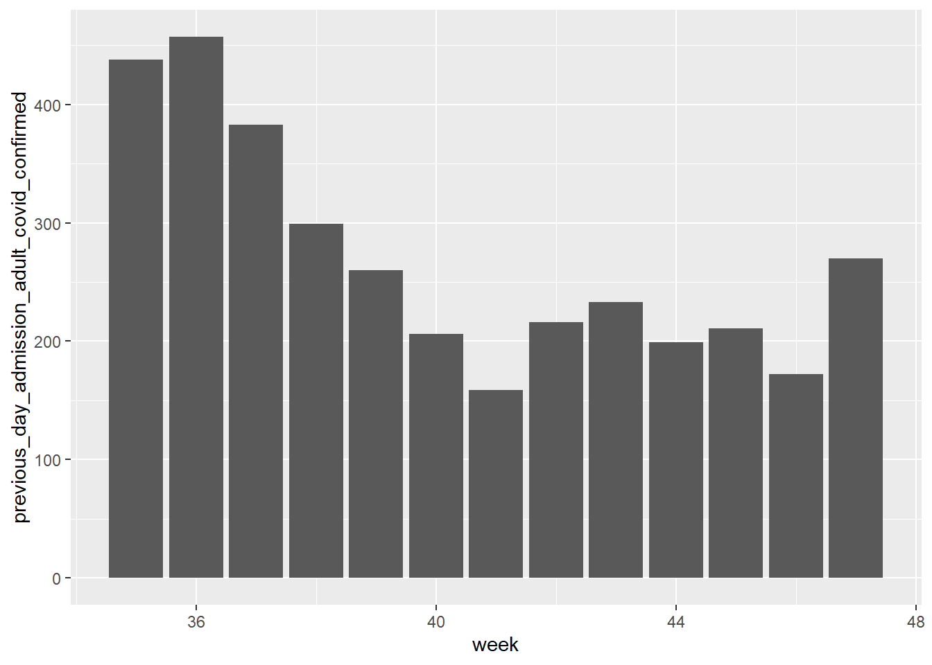 The chart below shows the number of adult hospital admissions per week, for the last three months, in Oklahoma as a state:
