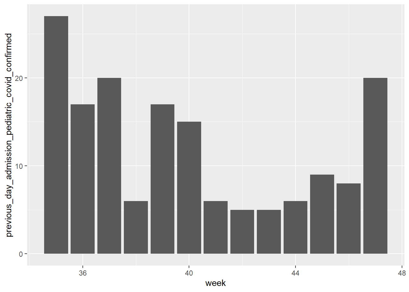 The chart below shows the number of pediatric hospital admissions per week, for the last three months, in Oklahoma as a state: